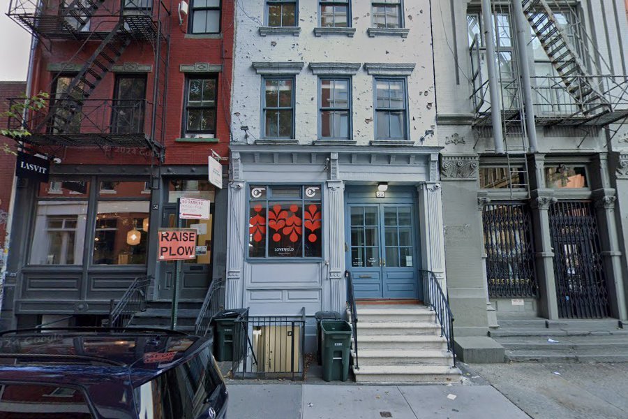 53 Wooster Street was originally built around 1825 as a two-and-a-half-story brick residence with a marble stoop, part of a modest but respectable stretch of middle-class homes. As the neighborhood shifted toward commercial and transient uses by the mid-19th century, the building transitioned accordingly. In 1870, the attic was expanded into a full third story, a cast-iron storefront was installed, and the façade was updated with bracketed sills, cornices, and fluted pilasters, giving the building its present form in the neo-Grec style. Throughout the late 19th and early 20th centuries, it housed a sewing machine shop, a French dyeing establishment, a commercial printing firm, and a suitcase frame factory. In 1945, it was acquired by Plymouth Marine Contractors, who remained through the postwar era. As SoHo evolved into an arts district in the 1970s, the building became part of that transformation, notably serving as one of the rooftop sites for Trisha Brown’s 1971 performance piece Roof Piece. The structure now contains retail and residential units, and its preserved 19th-century storefront remains a rare example of pre-Civil War fabric still visible amid the cast-iron streetscape. It is listed as a contributing building in the SoHo–Cast Iron Historic District Extension.